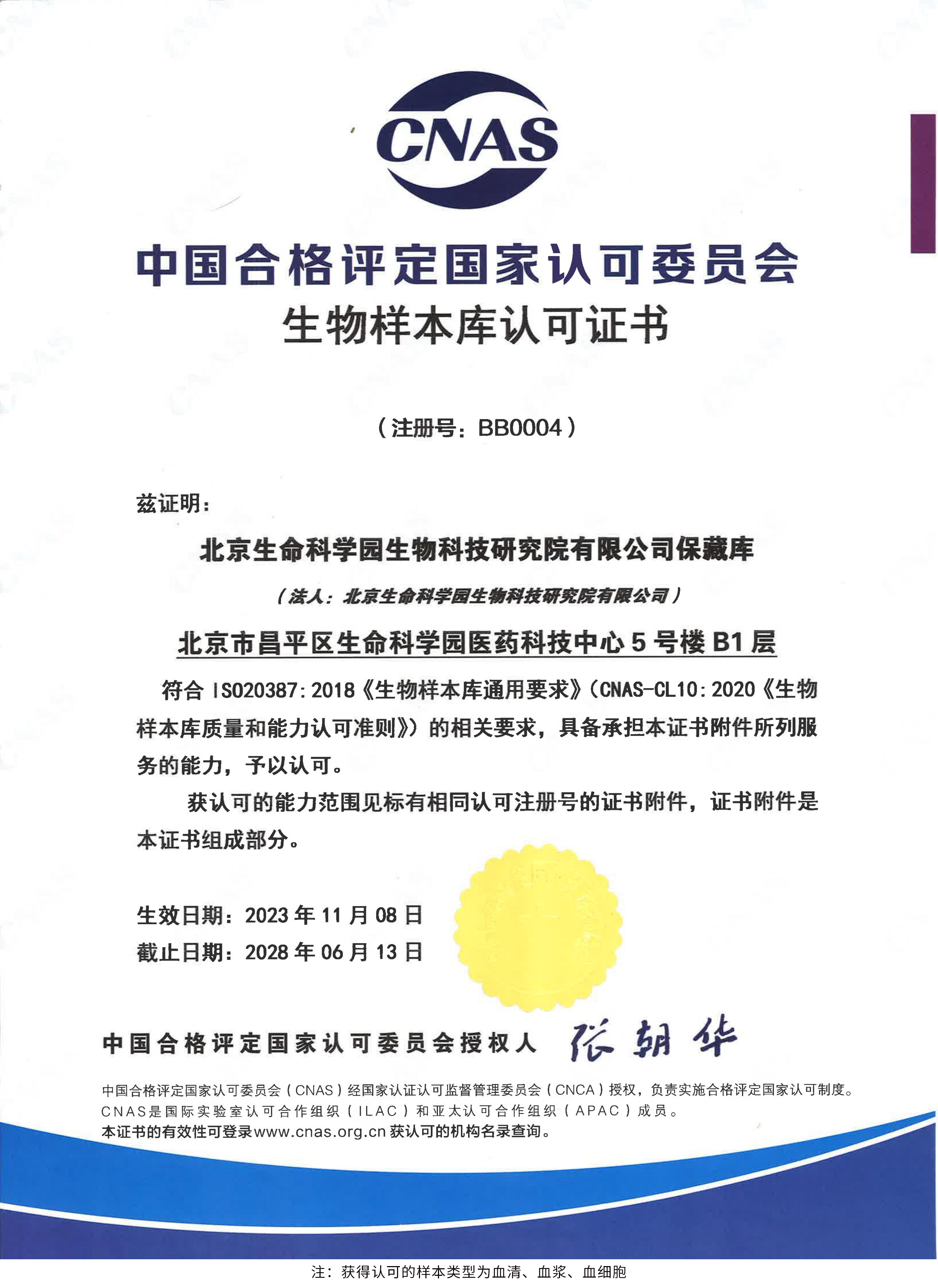 北京生命科學(xué)園生物科技研究院(以下簡(jiǎn)稱“北京生物樣本資源庫”)(Biobank of Life Science Park,簡(jiǎn)寫“BoLSP”)是一家由北京市科委和中關(guān)村生命科學(xué)園共同支持設(shè)立的第三方生物樣本庫公共服務(wù)平臺(tái),秉承北京重大疾病臨床數(shù)據(jù)和樣本資源庫(以下簡(jiǎn)稱“北京庫”)(Beijing Biobank of Clinical Resources,BBCR)十余年的發(fā)展成果,聚合眾多臨床樣本專家的專業(yè)共識(shí),致力于在生命科學(xué)、生物醫(yī)藥研究領(lǐng)域發(fā)揮銜接樣本資源持有者與研究者的橋梁作用,解決生物樣本資源開發(fā)上下游信息不對(duì)稱、資源共享困難等問題。研究院在北京中關(guān)村生命科學(xué)園昌平園區(qū)建立了2000㎡生物樣本庫,最大存儲(chǔ)規(guī)模達(dá)1000萬份。研究院遵循CNAS-CL10:2020《生物樣本庫質(zhì)量和能力認(rèn)可準(zhǔn)則》,同時(shí)結(jié)合北京庫過去十年的工作經(jīng)驗(yàn)與教訓(xùn),建立了一套完善的生物樣本保藏質(zhì)量管理體系,從人、機(jī)、料、法、環(huán)、控多個(gè)角度,實(shí)現(xiàn)生物樣本保藏過程的全面質(zhì)量控制,先后獲得國(guó)家科技部頒發(fā)的人類遺傳資源保藏行政許可證書和中國(guó)合格評(píng)定國(guó)家認(rèn)可委員會(huì)(China National Accreditation Service for Conformity Assessment,CNAS)頒發(fā)的“CNAS認(rèn)可證書”。
